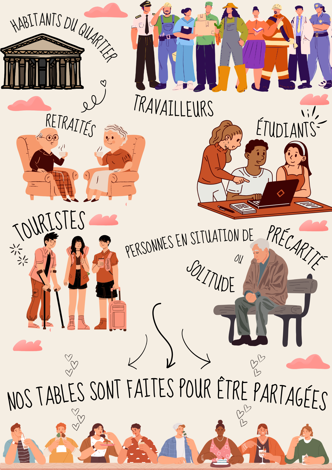 Habitants du quartier et travailleurs, étudiants et retraités, touristes internationaux et provinciaux, et un tarif adaptés aux personnes en situation de précarité ou de solitude.